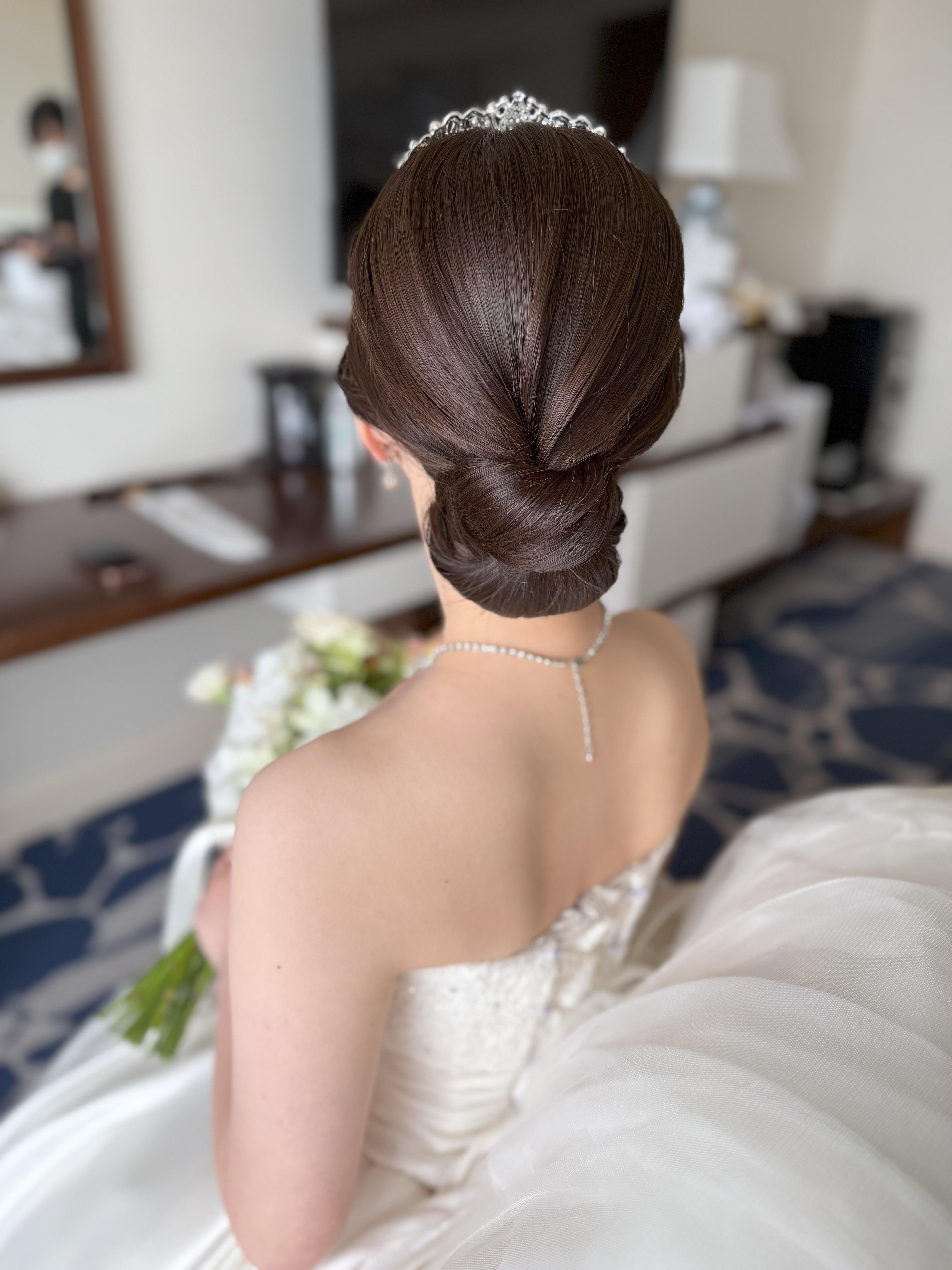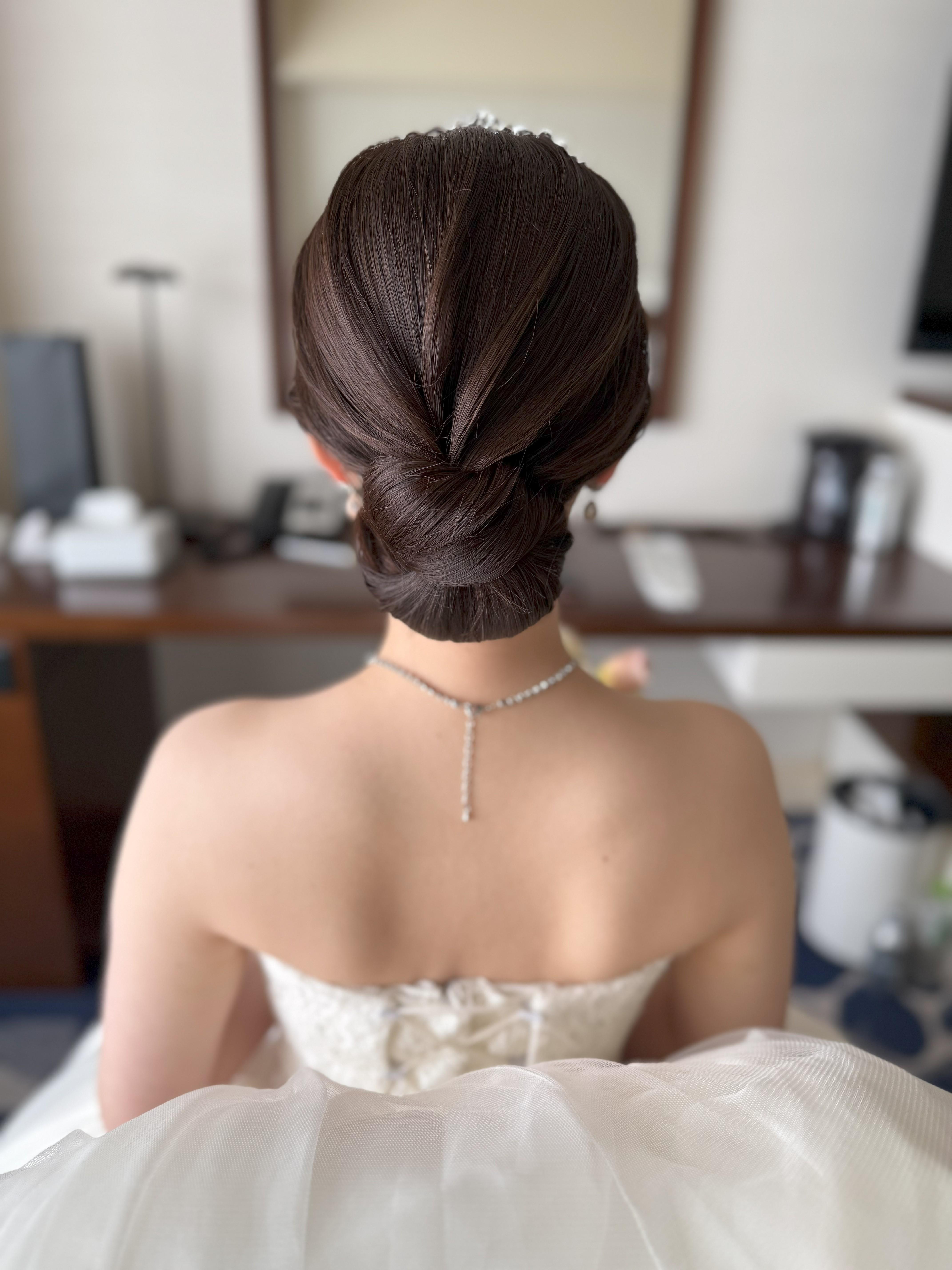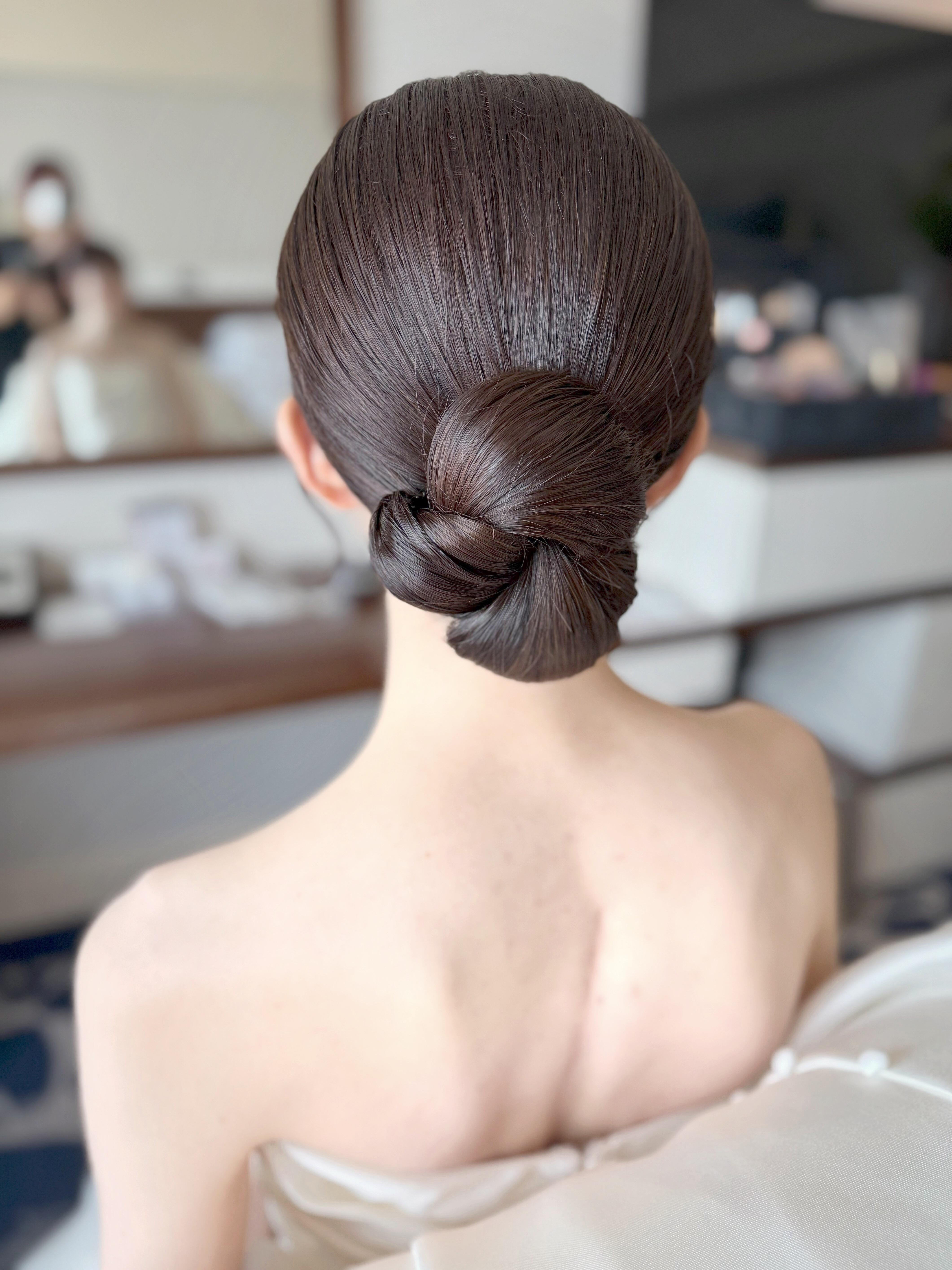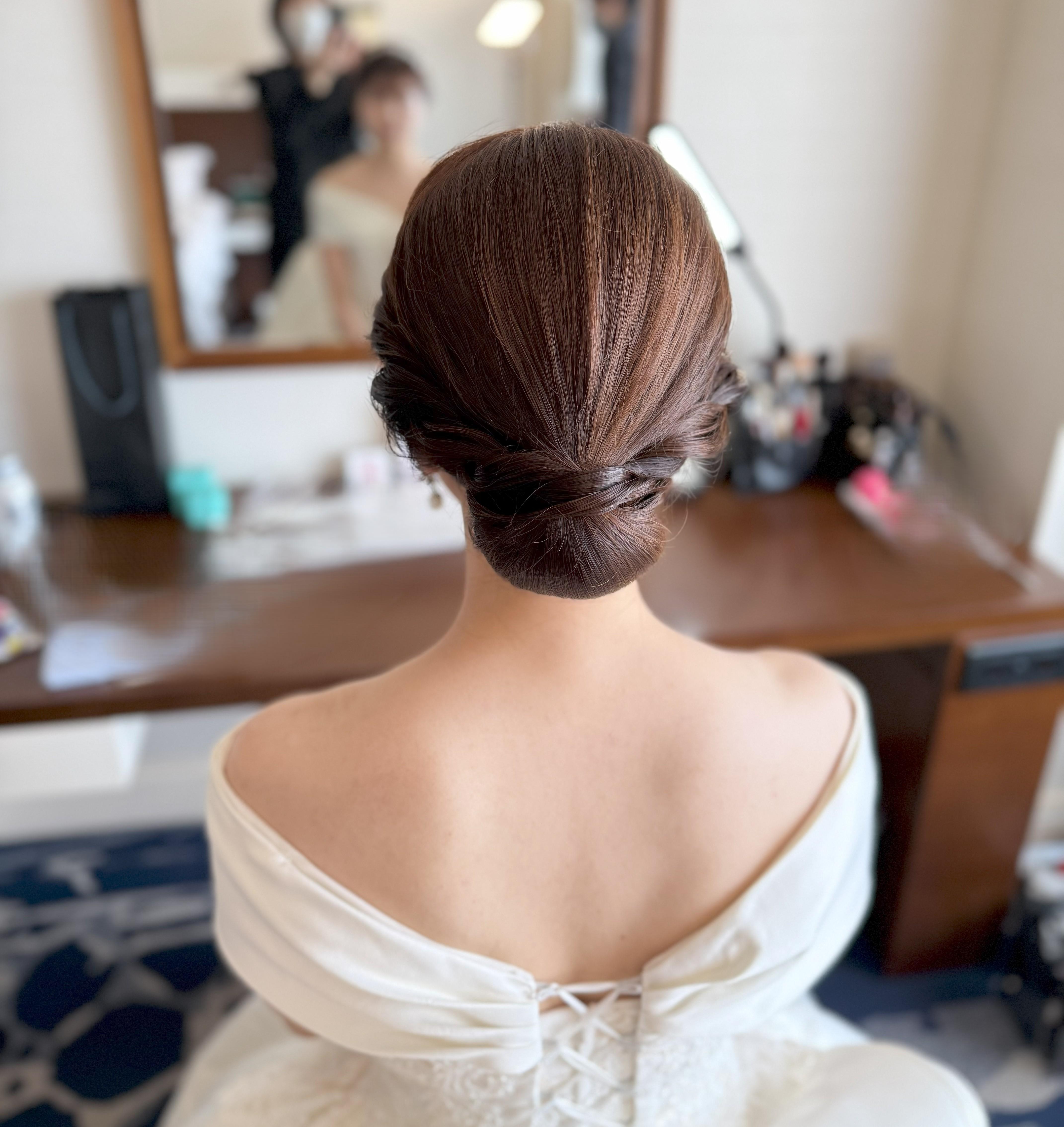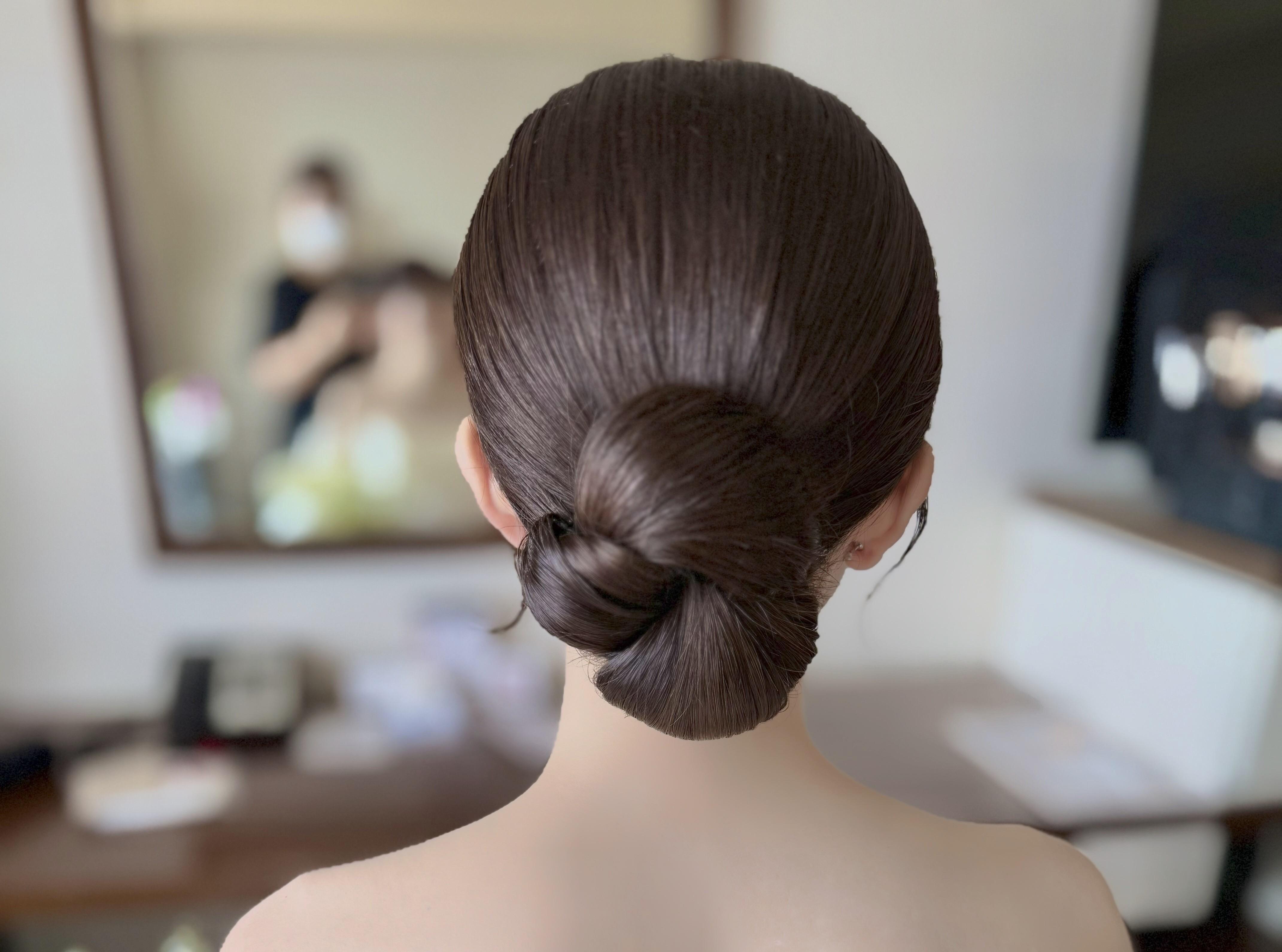 立体感がありつつコンパクトにまとめたニュアンスシニヨン