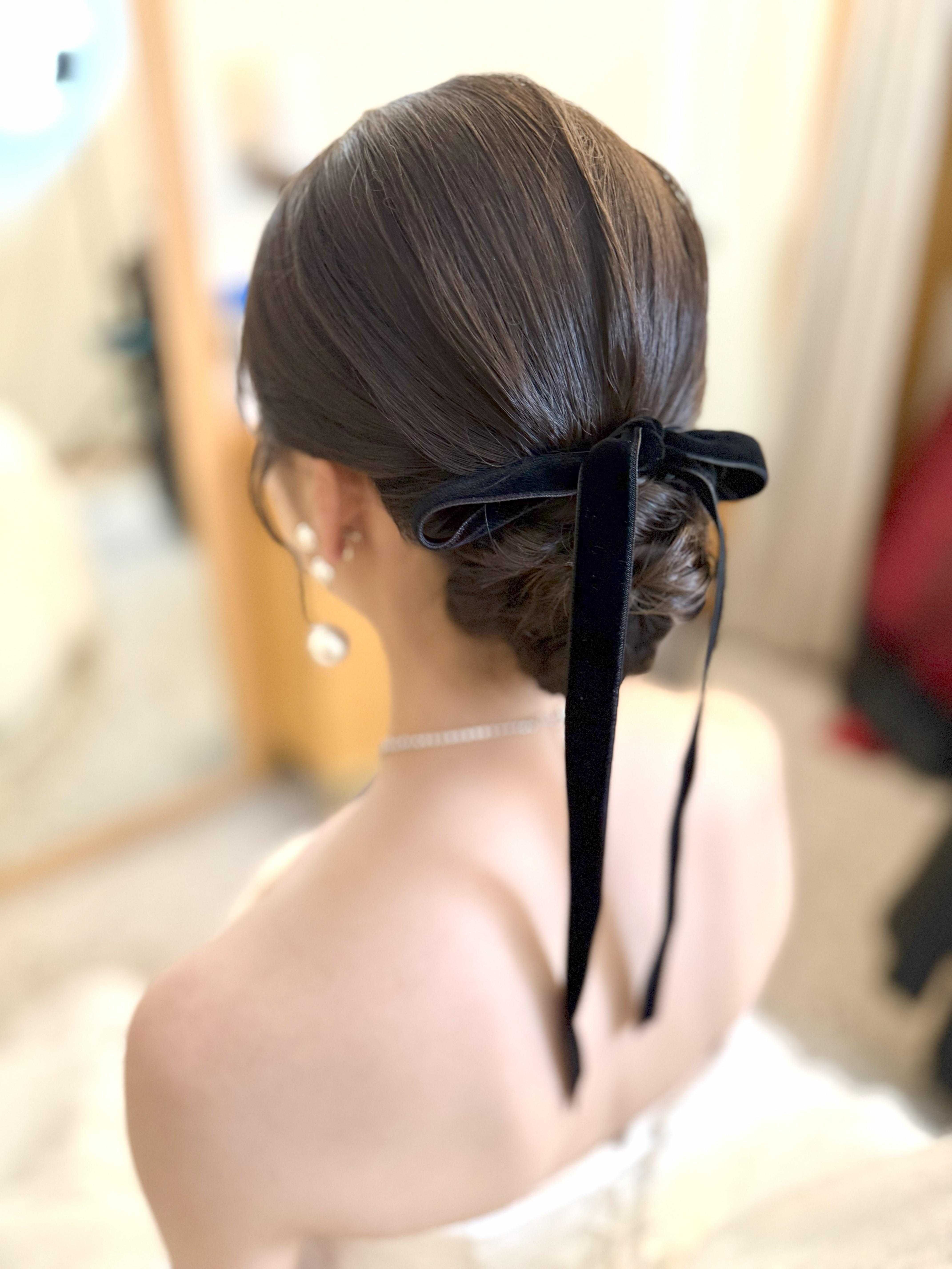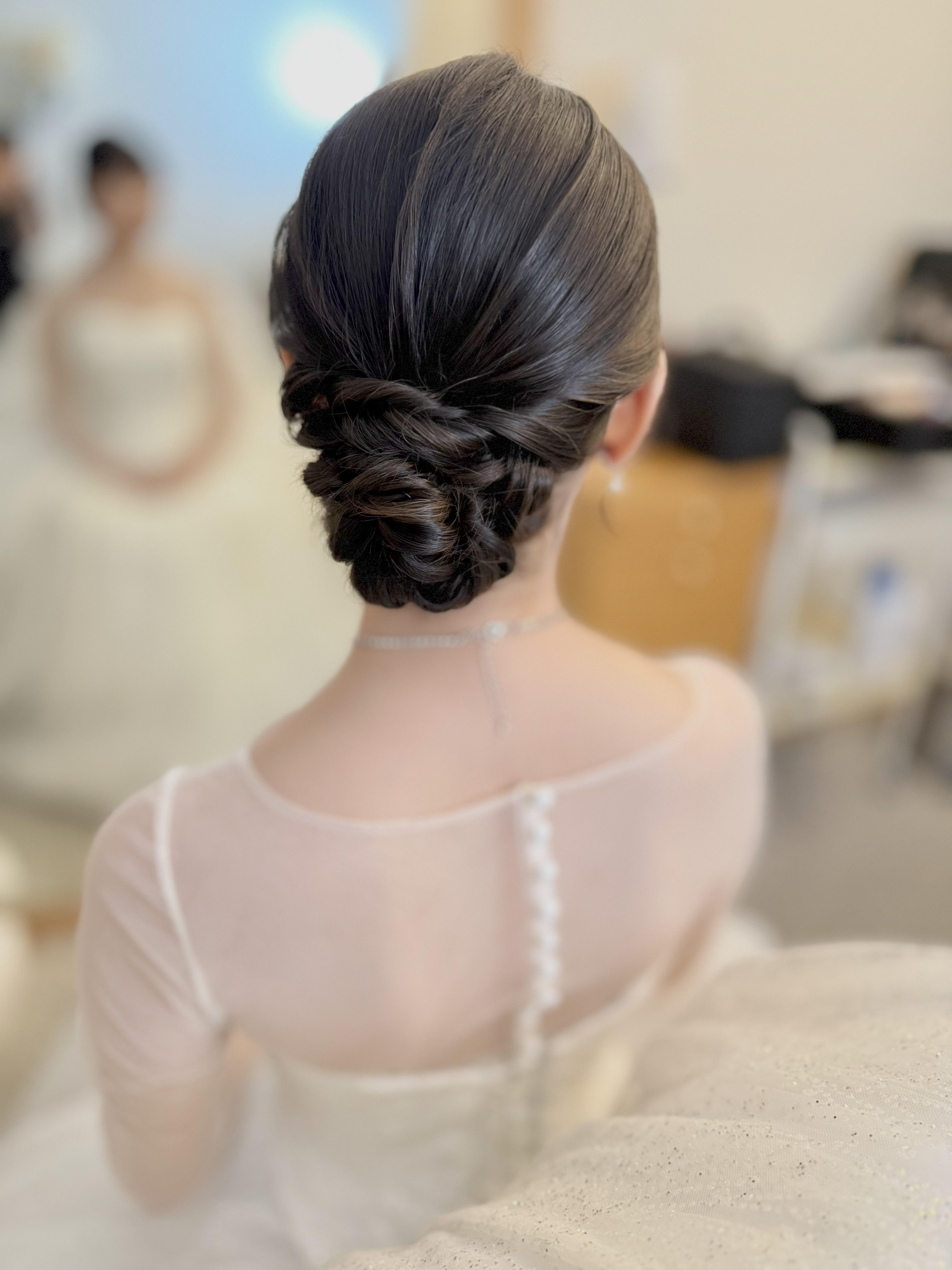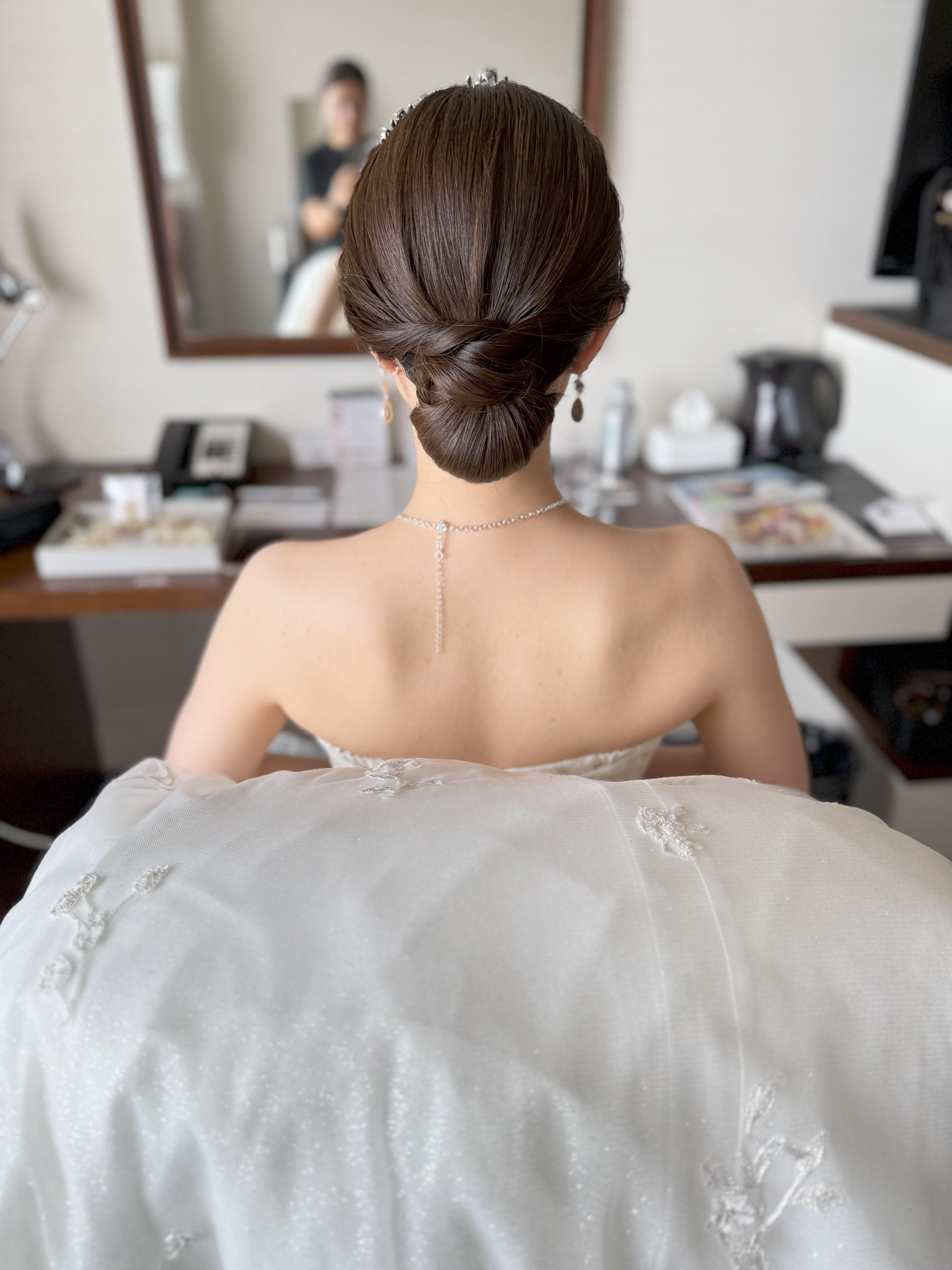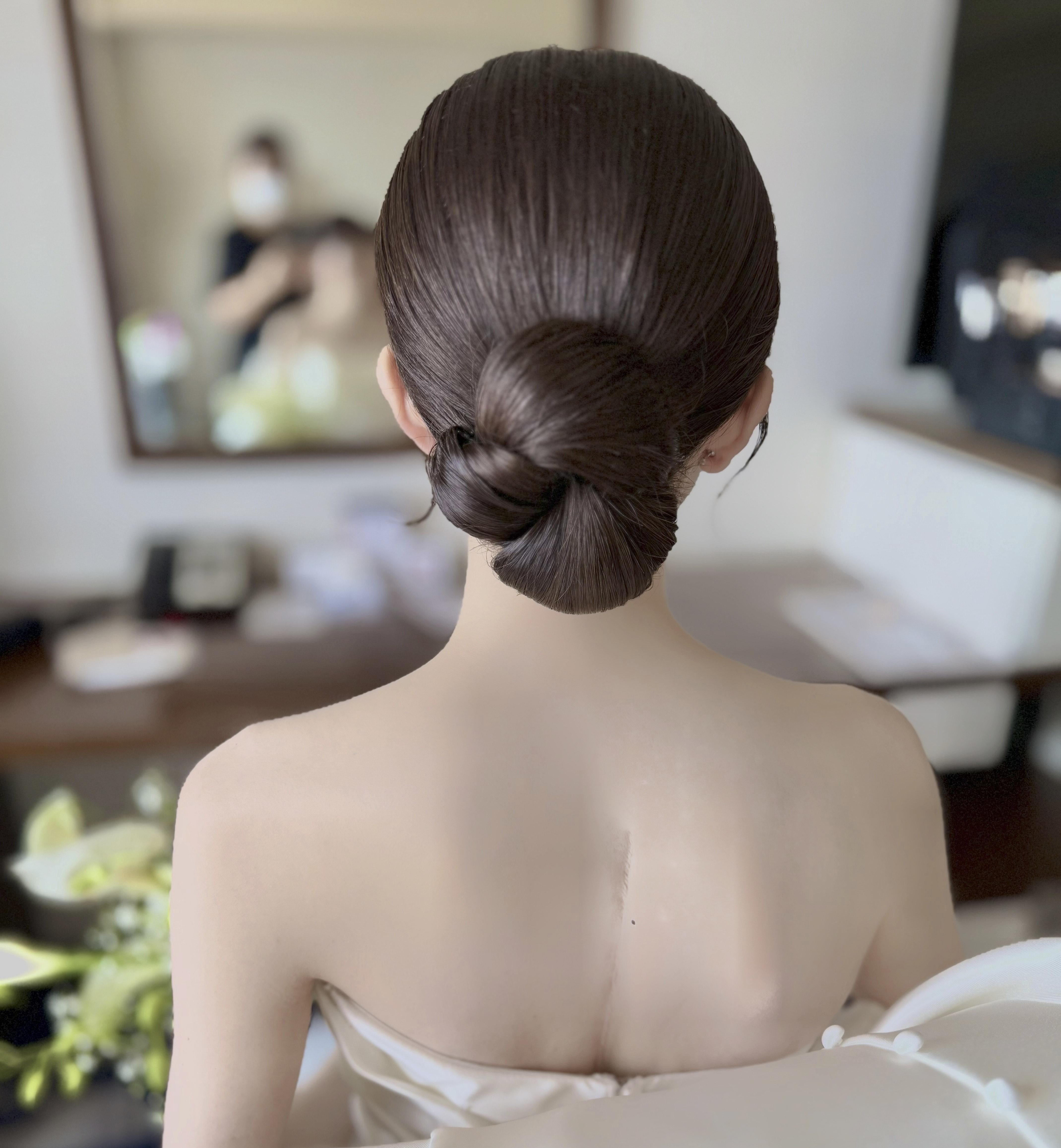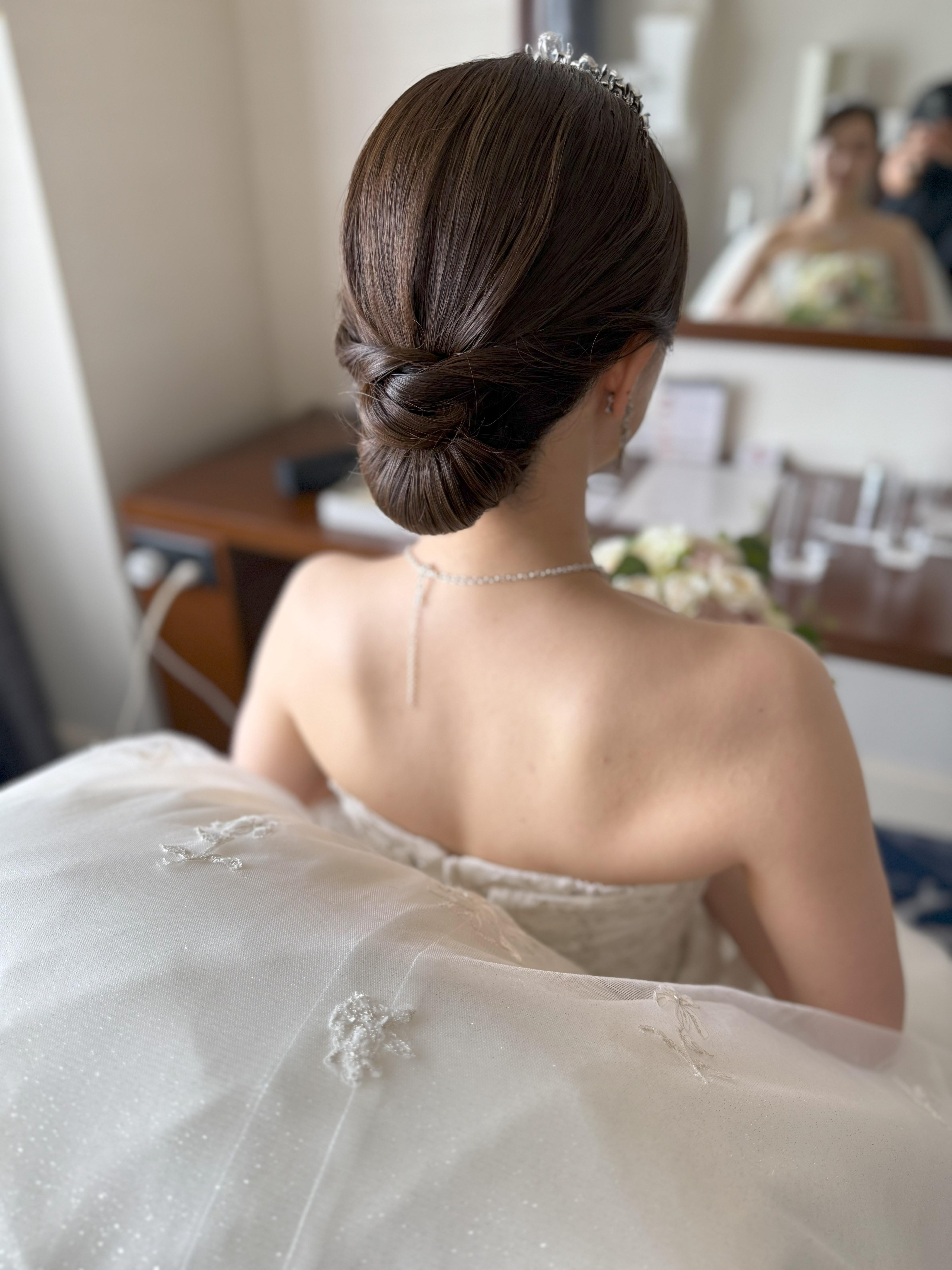 立体感がありつつコンパクトにまとめたニュアンスシニヨン