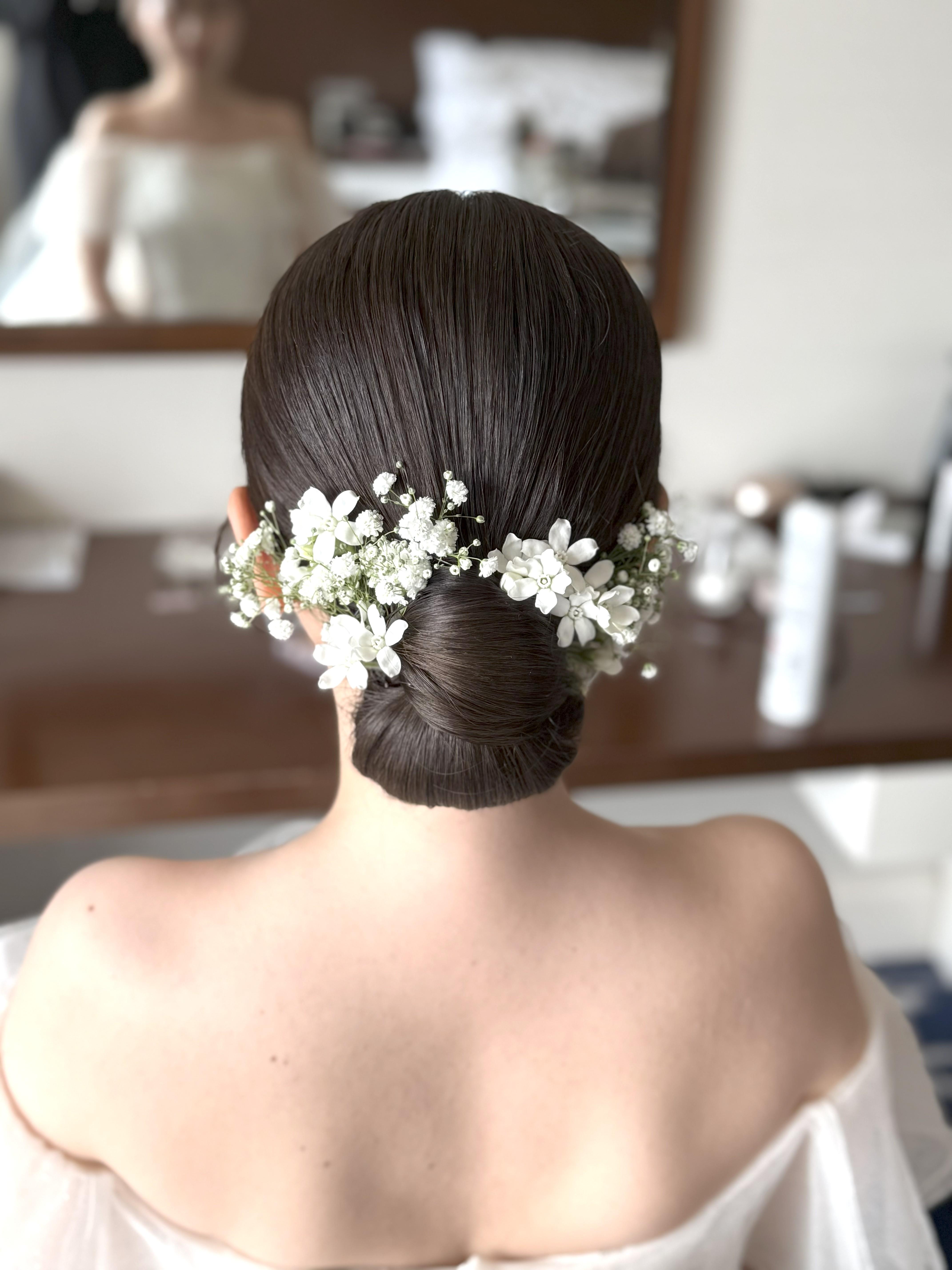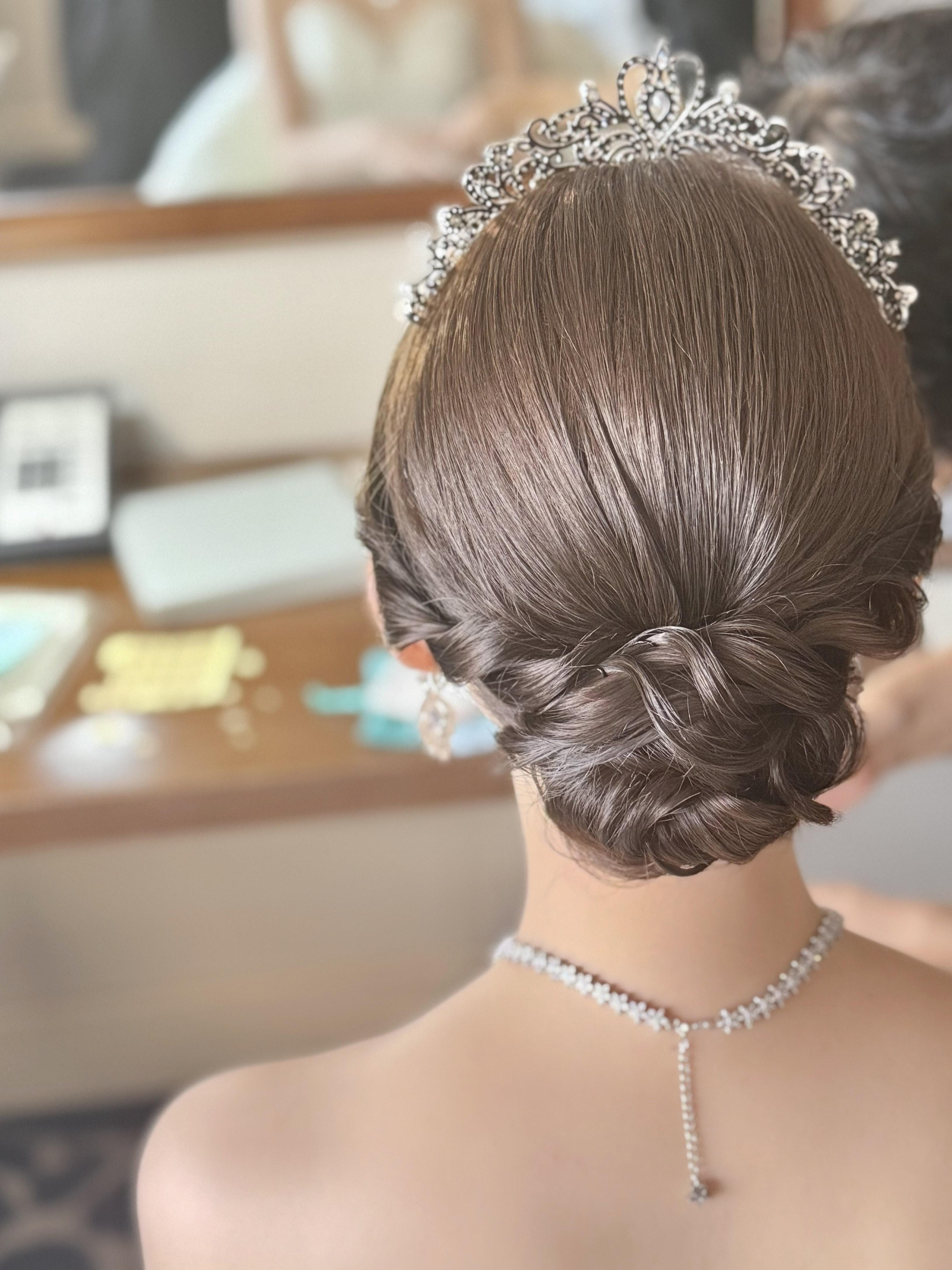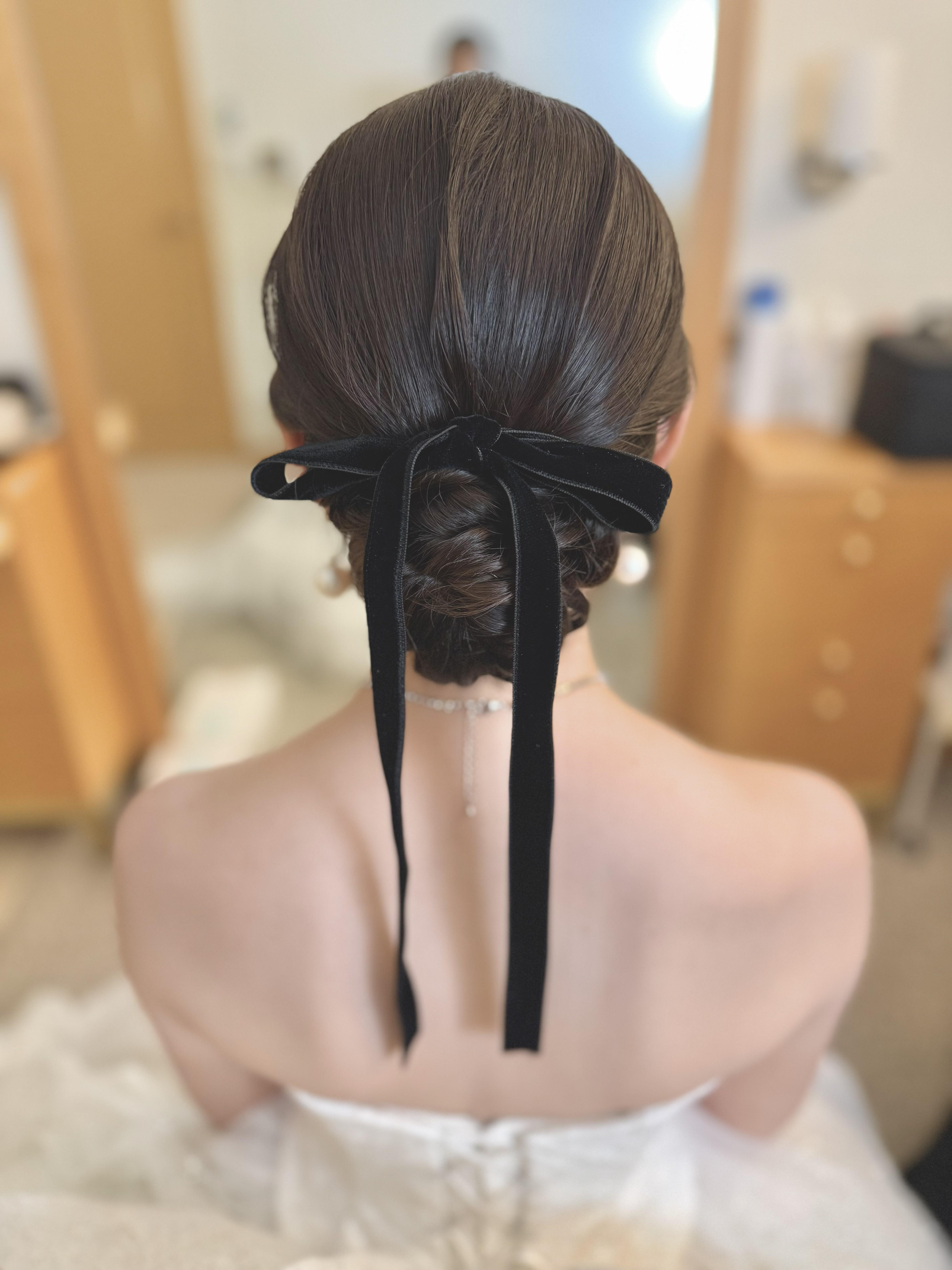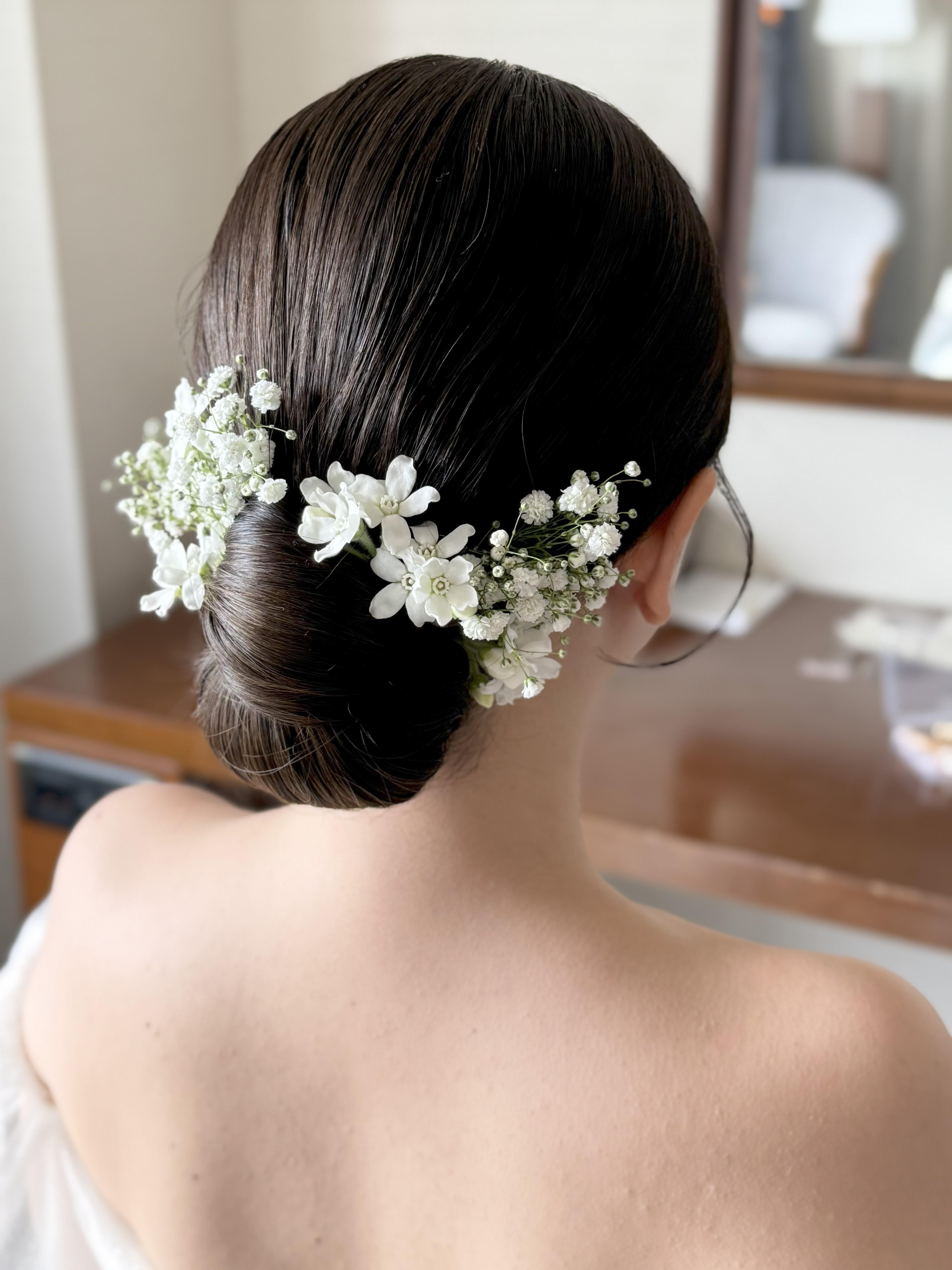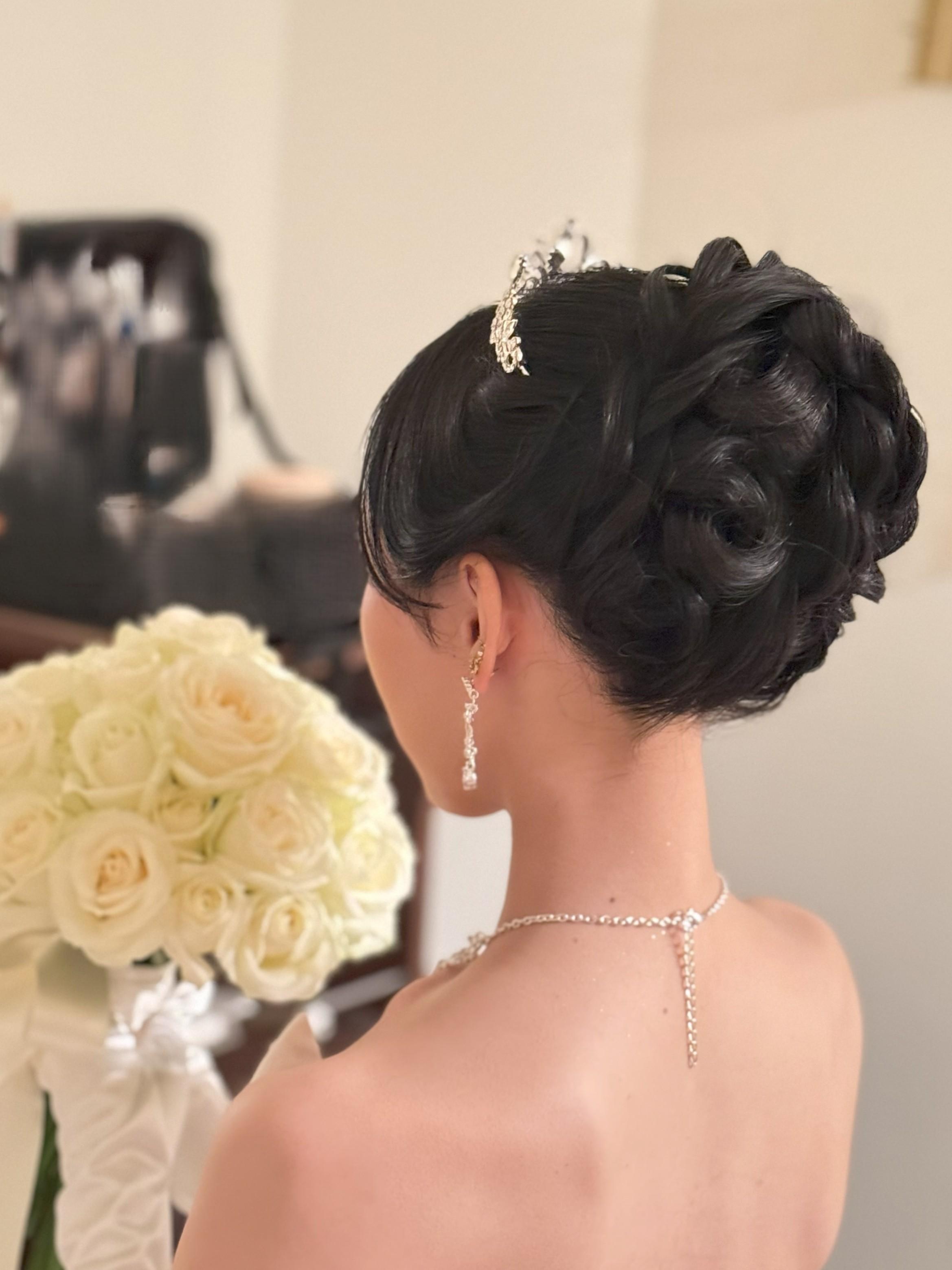 立体感がありつつコンパクトにまとめたニュアンスシニヨン