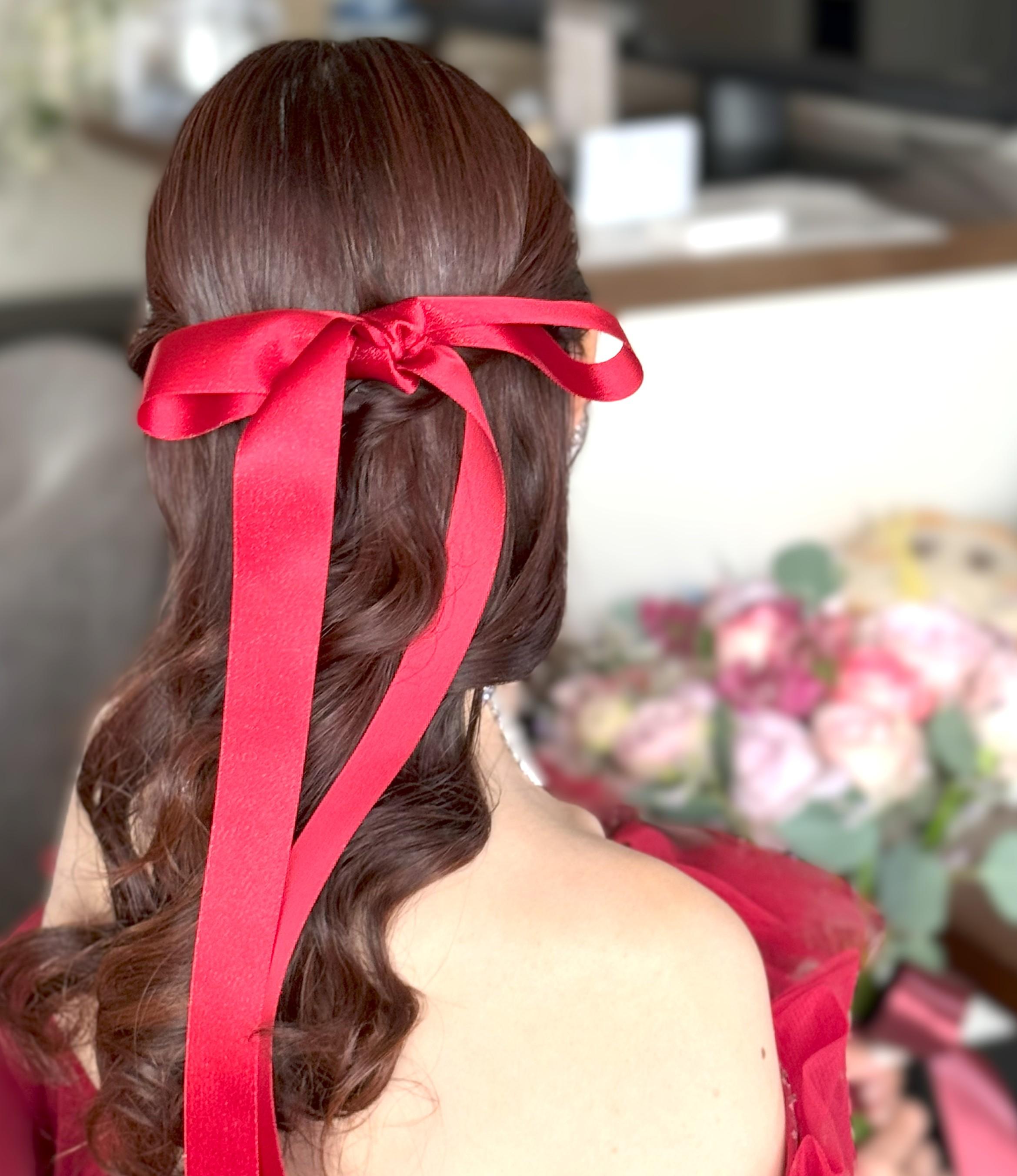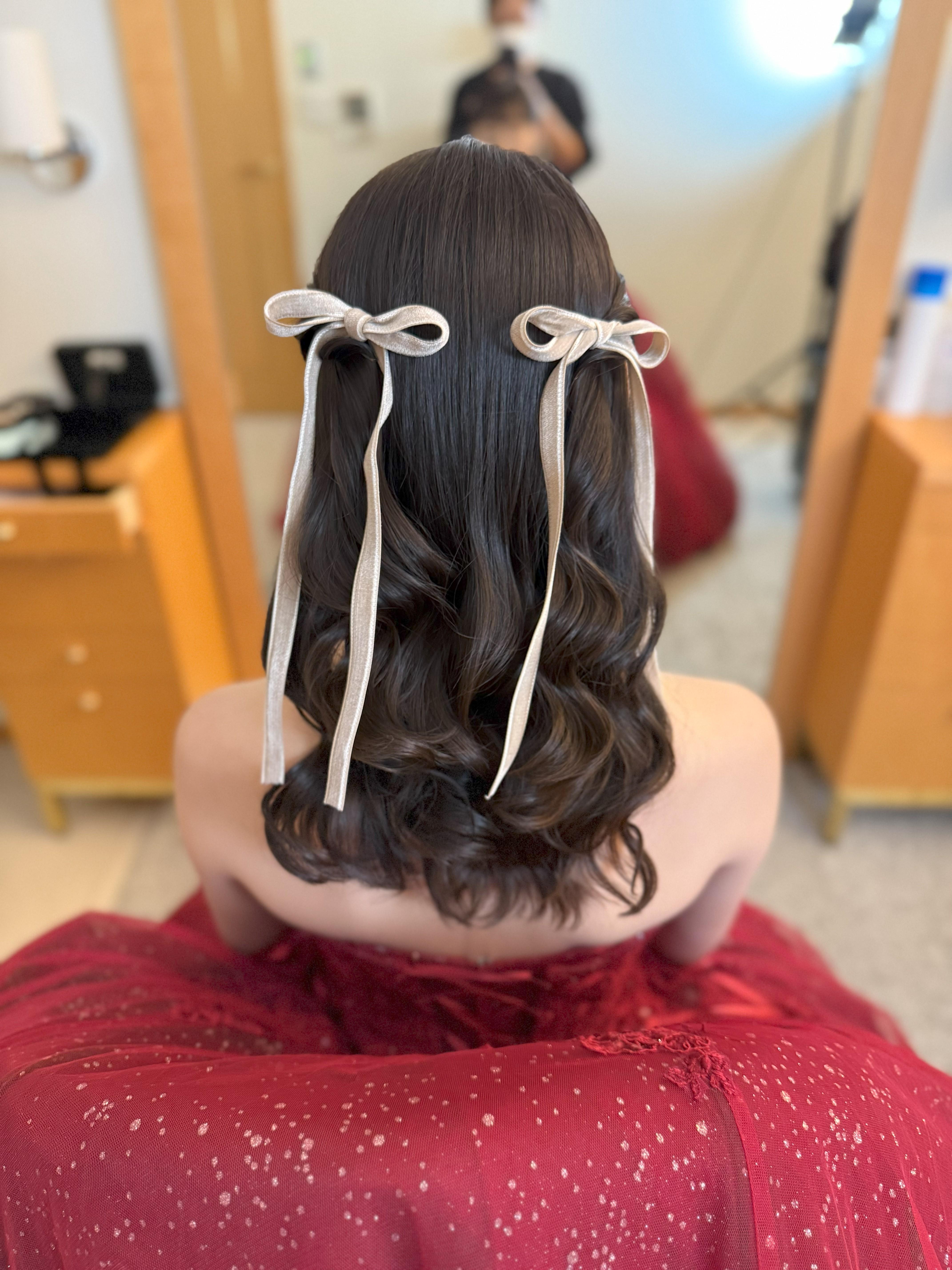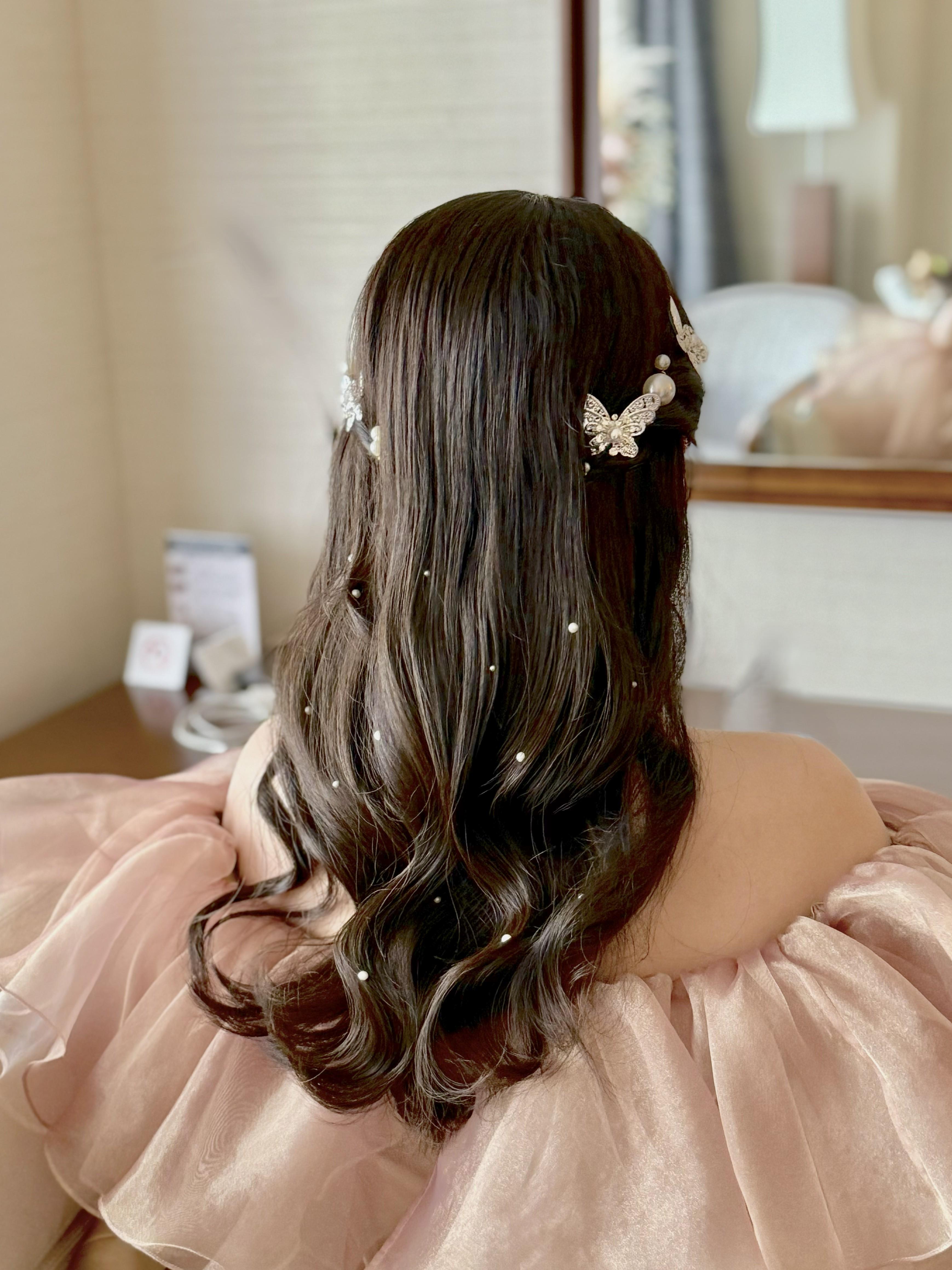 ゆるめウェーブハーフアップ。星のビジューとドレスが素敵