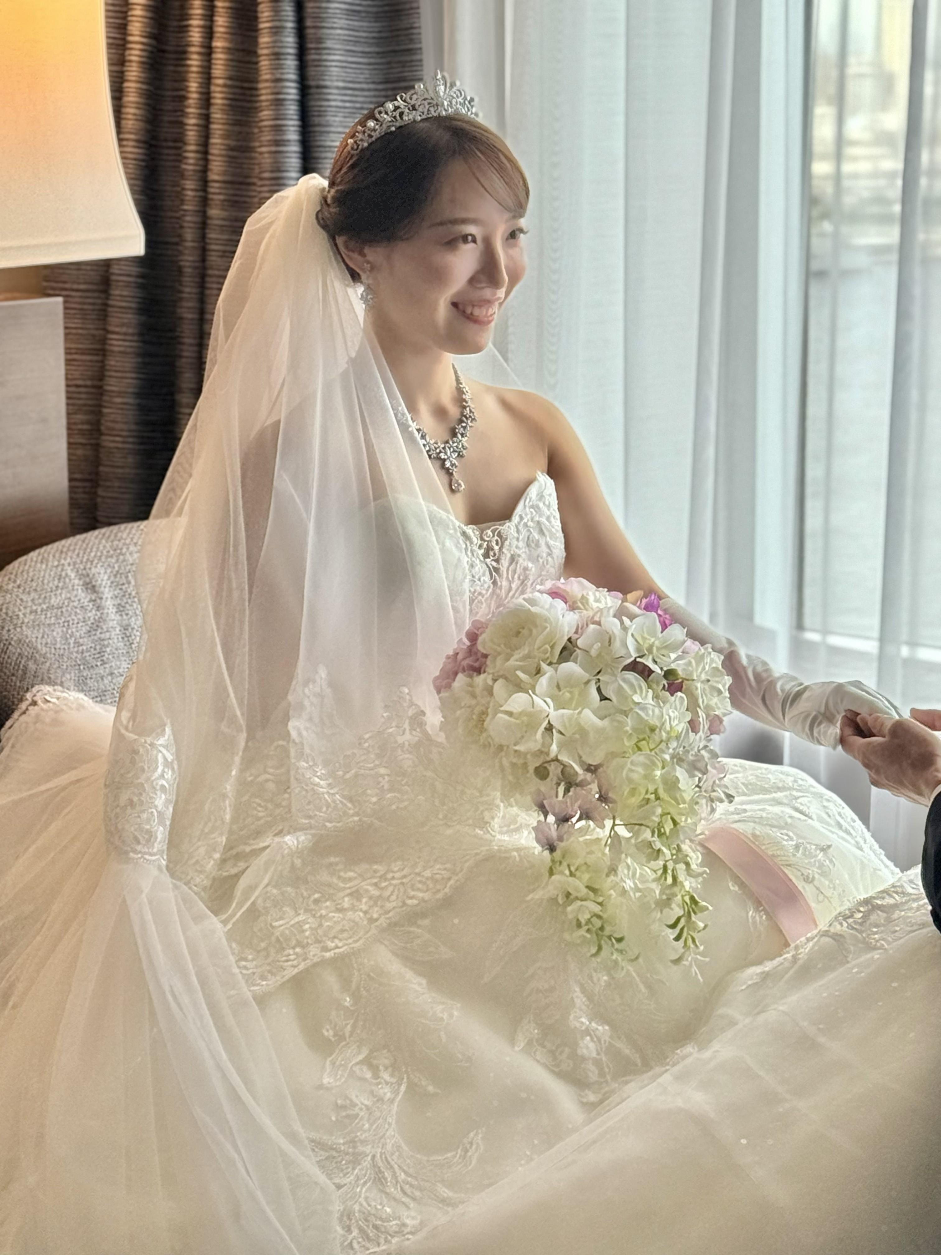 毛先のパールがアクセント華やかカールダウンお色直しスタイル